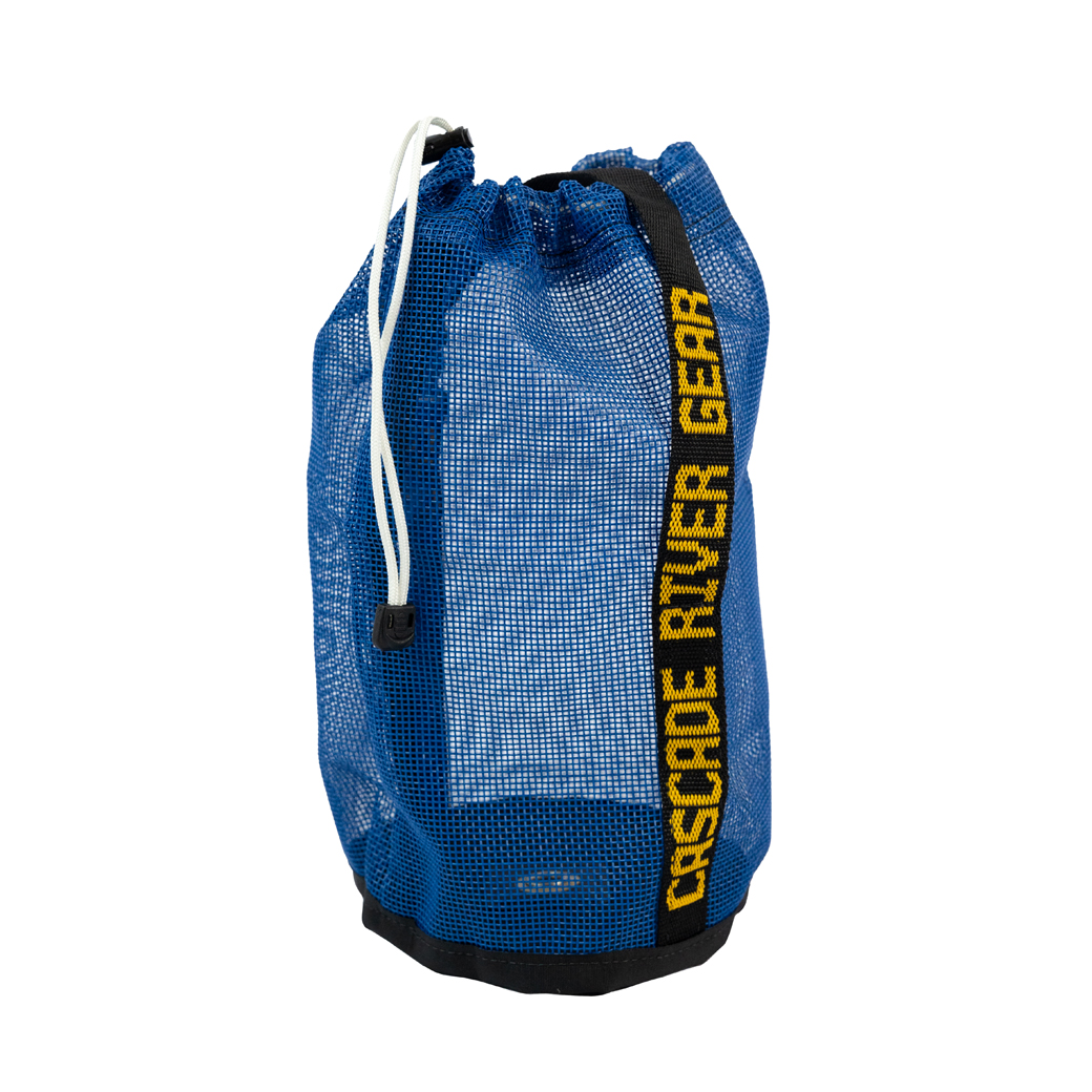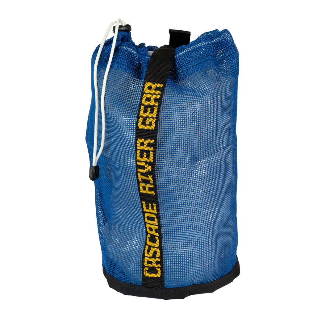 Strong PVC coated polyester mesh Bow Line Bags keep bow lines out of the way. Has drawstring closure top and a nylon grab strap with a plastic snap buckle to fasten to a lifeline or D-ring.