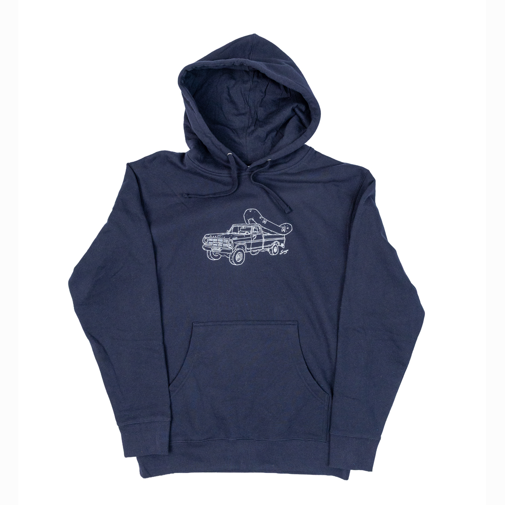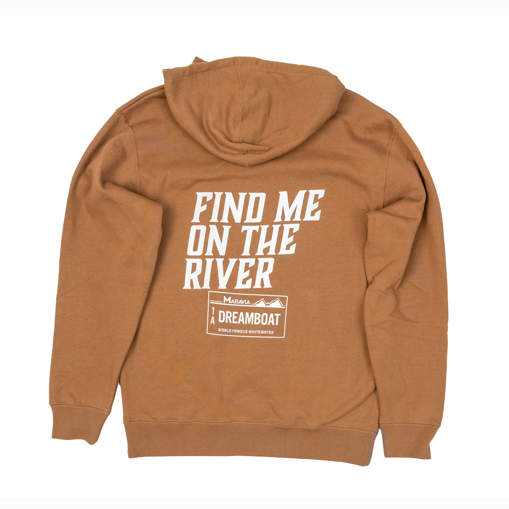 Stay warm while chasing river miles in the Maravia Dream Truck River Hoody. Featuring a vintage truck hauling a raft on the front and a “Find Me On The River” license plate graphic on the back, this hoody captures the spirit of road trips to the put-in and long days on the water. Comfortable, durable, and built for cool mornings and campfire evenings, it’s the perfect layer for river trips, boating, and everyday wear.