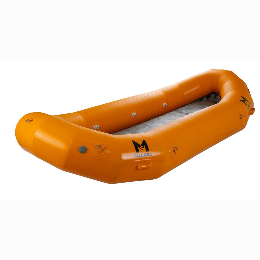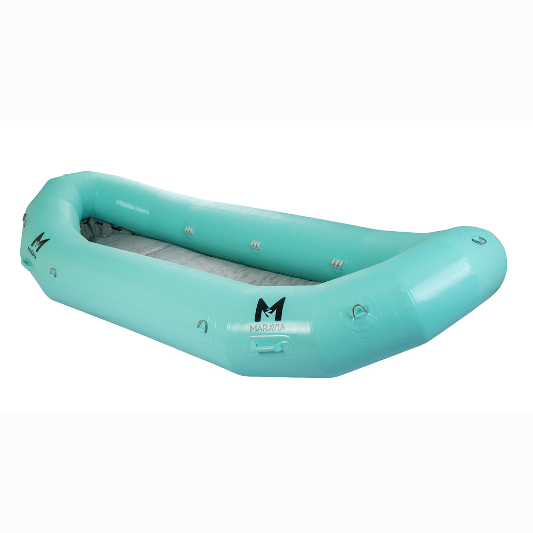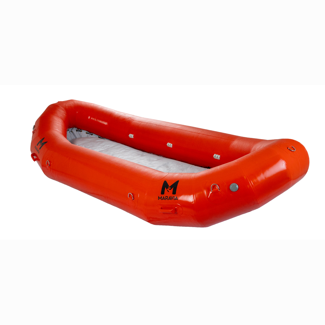 The Maravia Scout is perfect for tight squeezes on multi-day expeditions or install 3 thwarts and it will be your go-to for splashy fun. The diminishing tubes allow for more room in the bow and stern and lower profile in the wind. The 70” long straight section creates a perfect platform for an oversize box and cooler and 2-3 people when rowing. Install up to 3 thwarts and you have a fun paddle rig for up to 7.