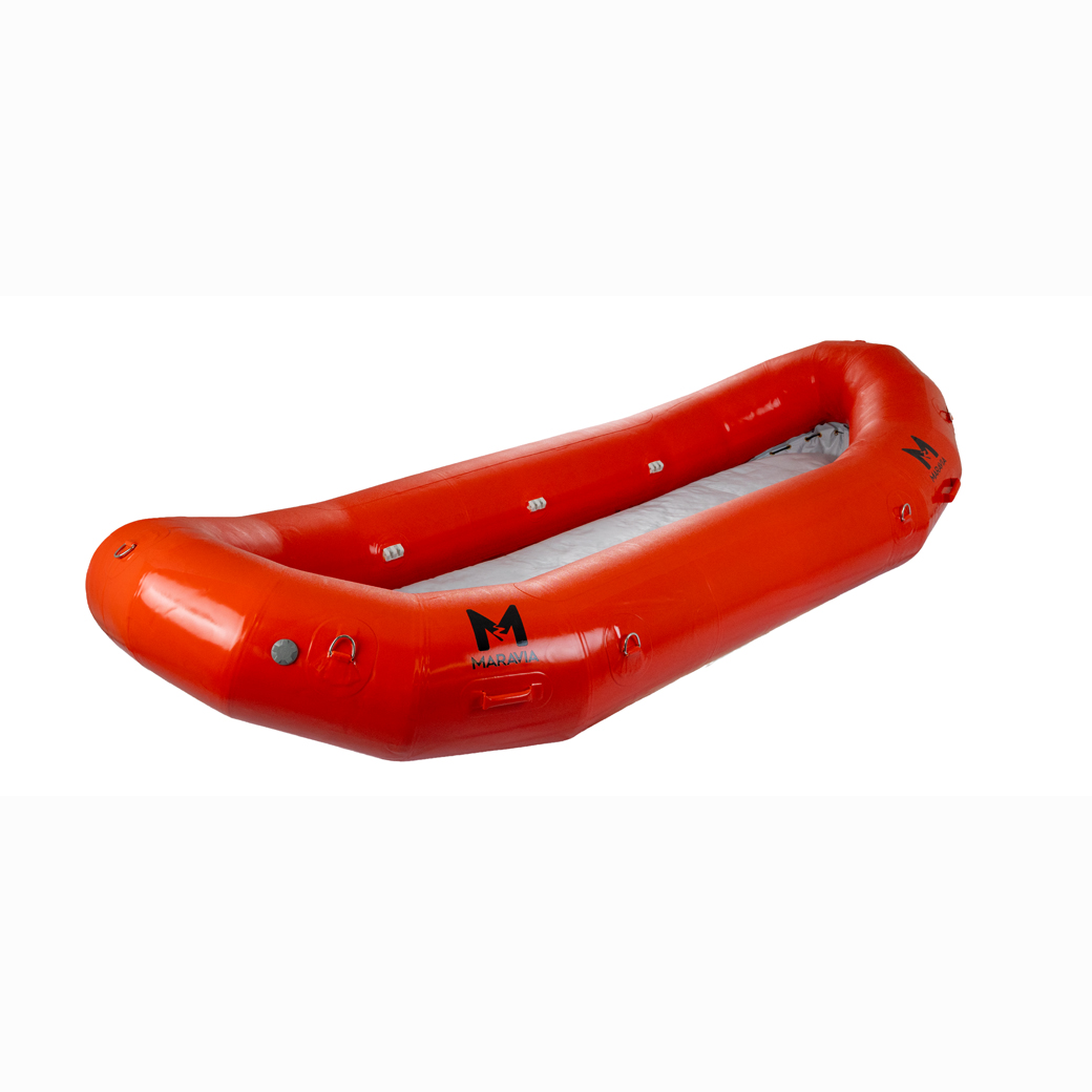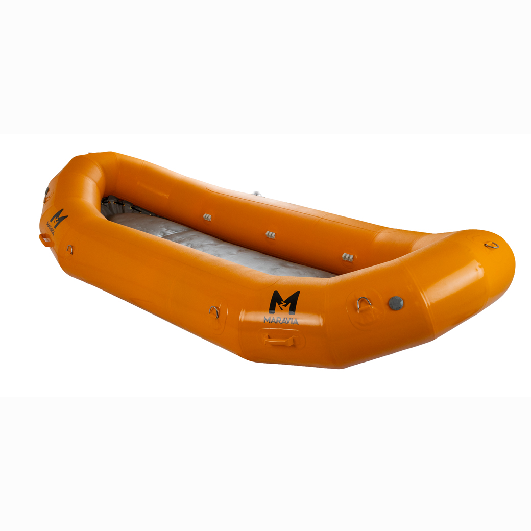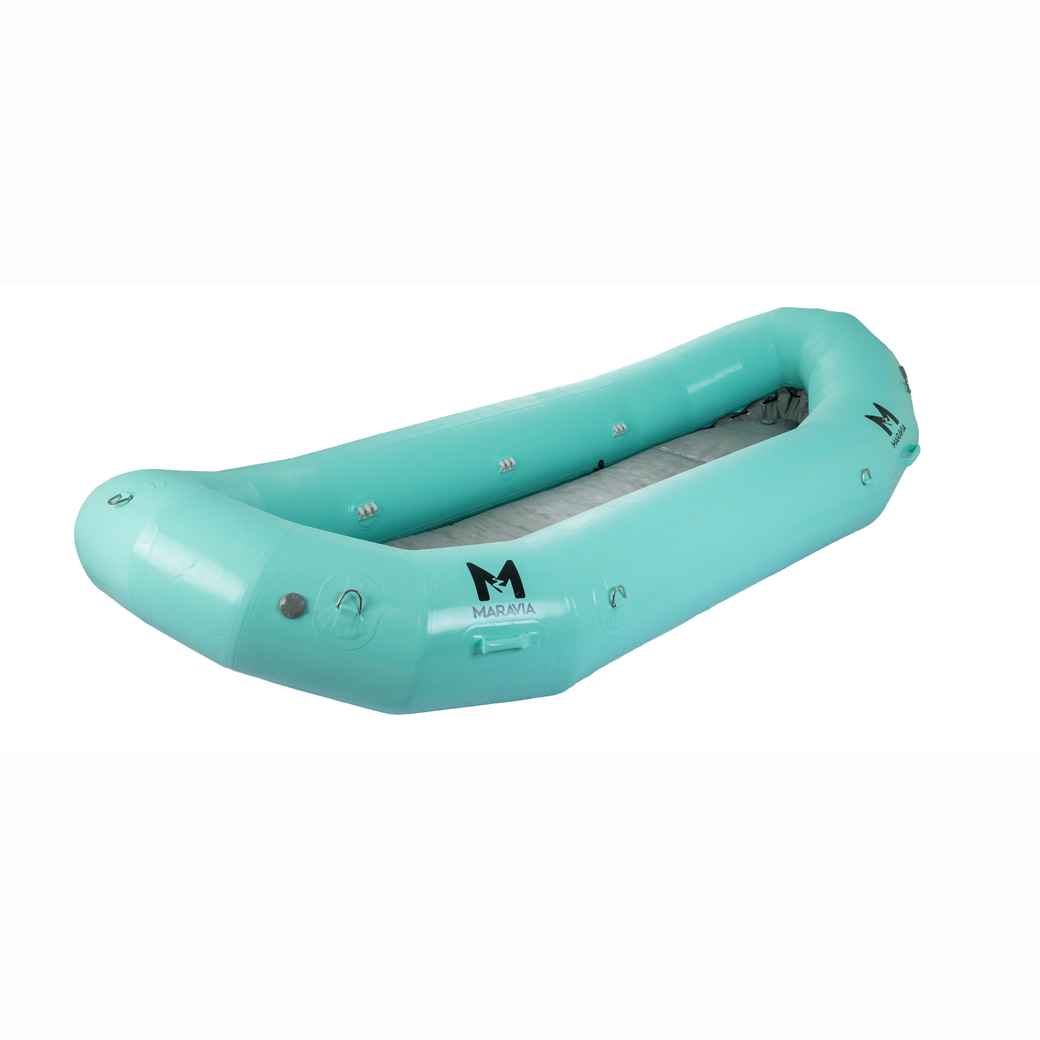 The Maravia Scout is perfect for tight squeezes on multi-day expeditions or install 3 thwarts and it will be your go-to for splashy fun. The diminishing tubes allow for more room in the bow and stern and lower profile in the wind. The 70” long straight section creates a perfect platform for an oversize box and cooler and 2-3 people when rowing. Install up to 3 thwarts and you have a fun paddle rig for up to 7.
