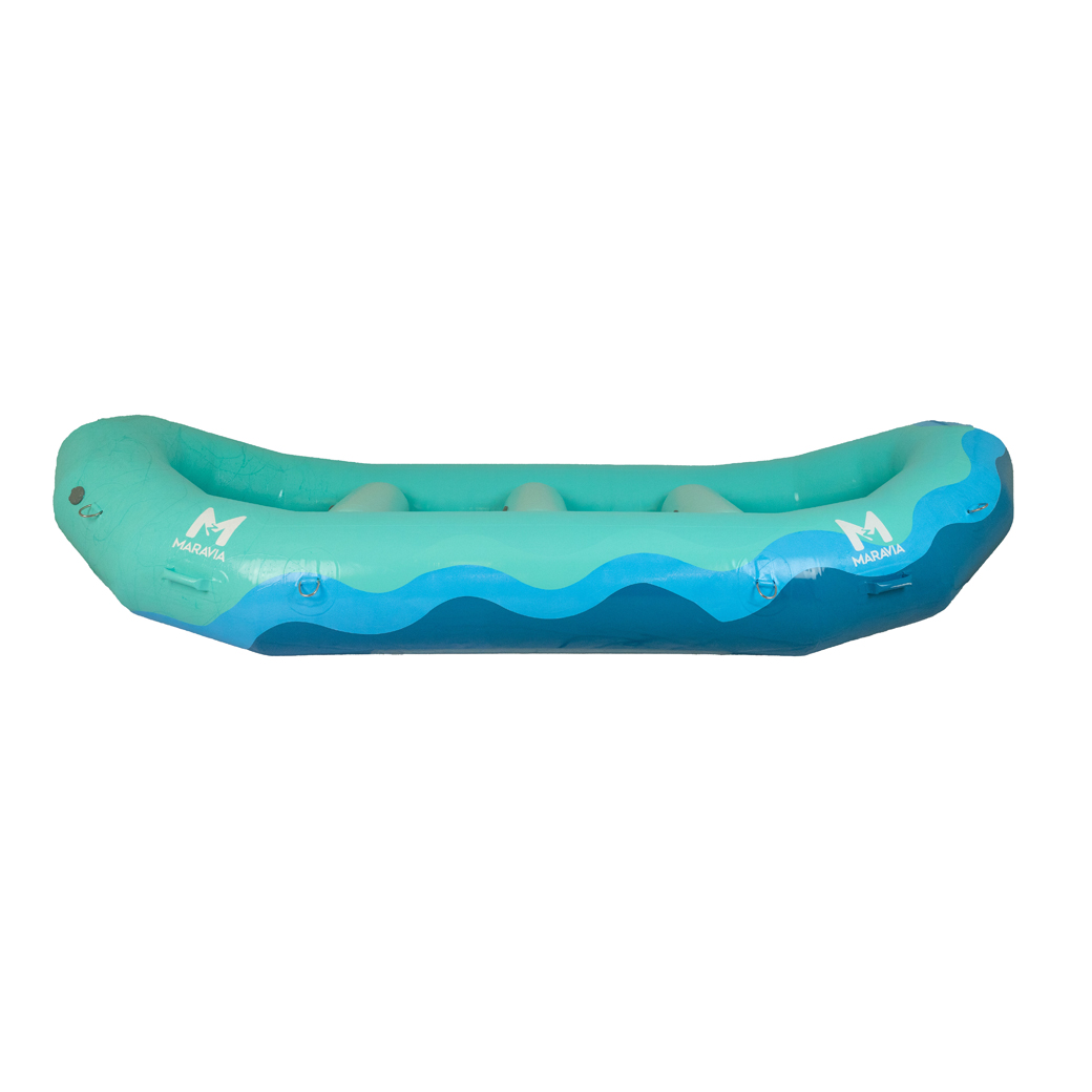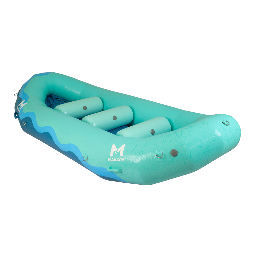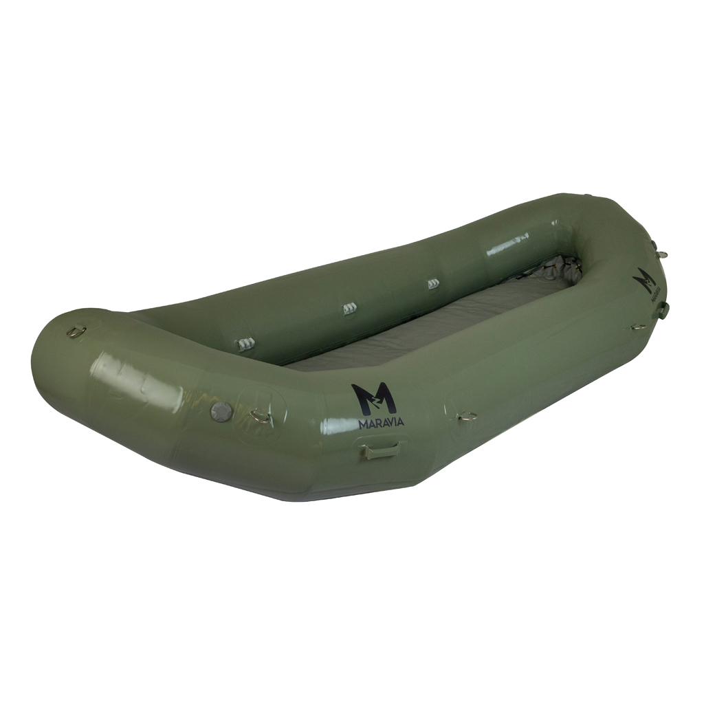 The Maravia Scout is perfect for tight squeezes on multi-day expeditions or install 3 thwarts and it will be your go-to for splashy fun. The diminishing tubes allow for more room in the bow and stern and lower profile in the wind. The 70” long straight section creates a perfect platform for an oversize box and cooler and 2-3 people when rowing. Install up to 3 thwarts and you have a fun paddle rig for up to 7.
