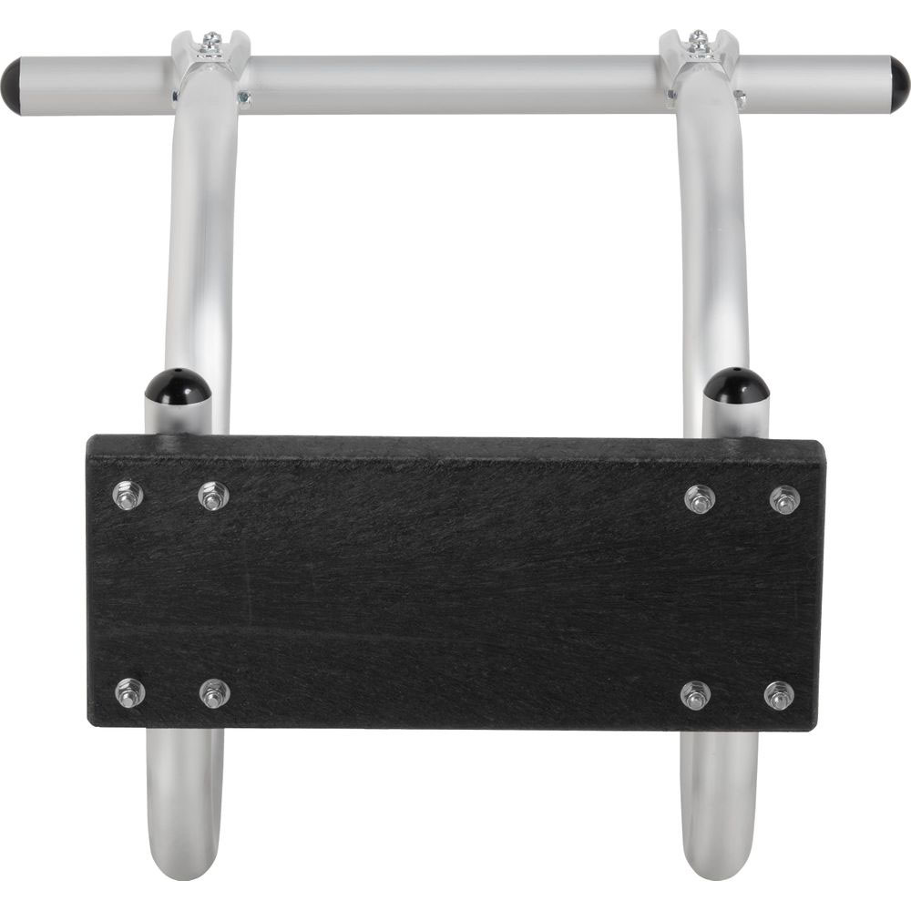 - The transom plate can be mounted on either side of the uprights, and adjusted up and down as needed.