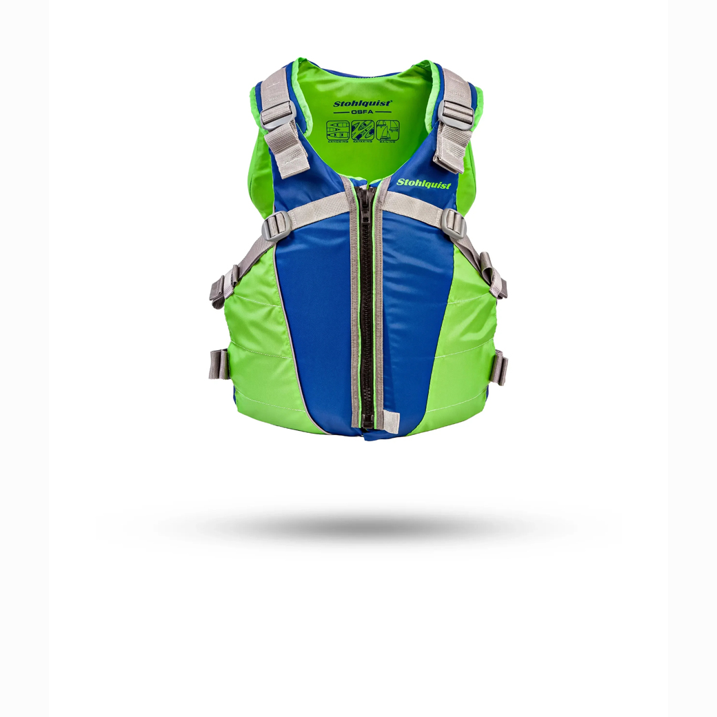 The Stohlquist OSFA PFD has adjustable shoulder and side pulls to fit a wide range of paddlers. The cross-chest cinch harness means zero ride-up while kayaking. The higher mesh back design increases comfort, ventilation, and clearance for even the tallest seat backs.