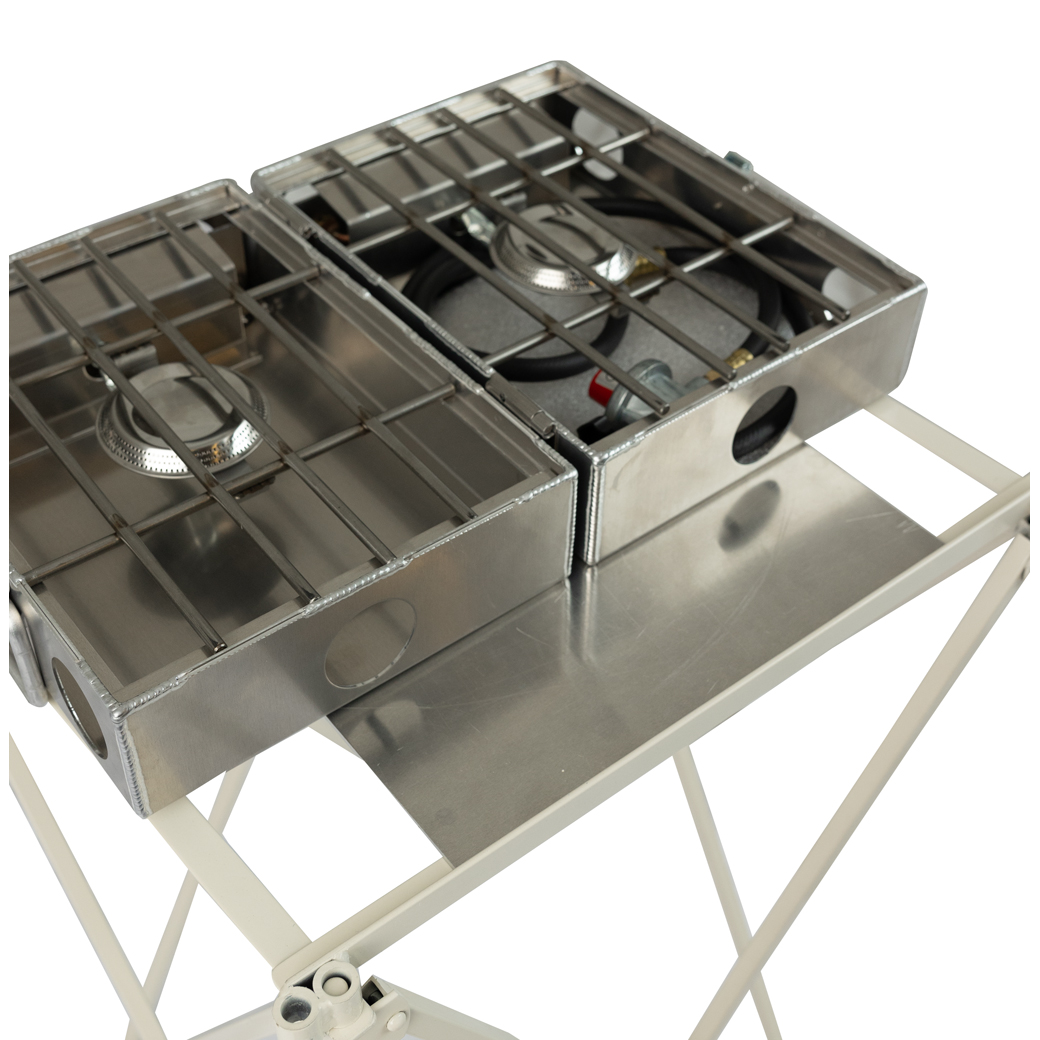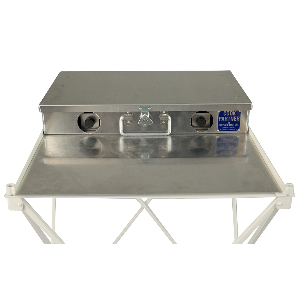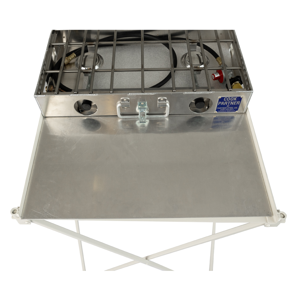 Table Plates convert Partner Steel stove stands into a table surface for 2 and 3 burner stoves. Table plate covers half the stove stand. 3 sizes: