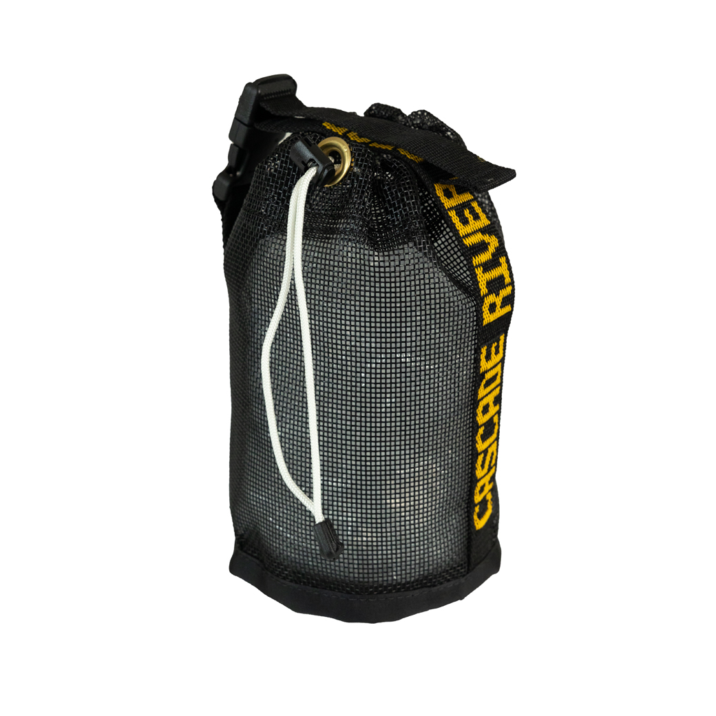 Strong PVC coated polyester mesh bag holds 30′ of rope.