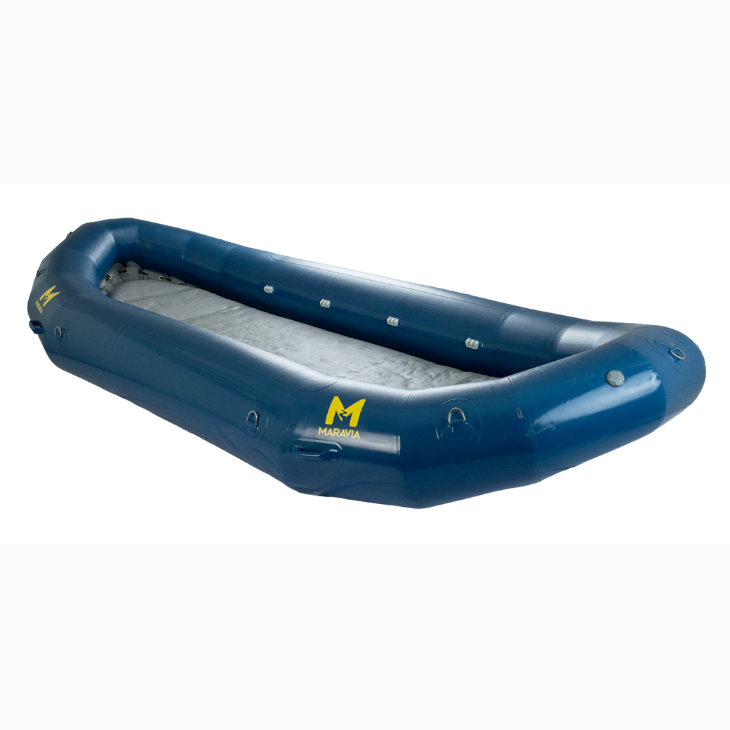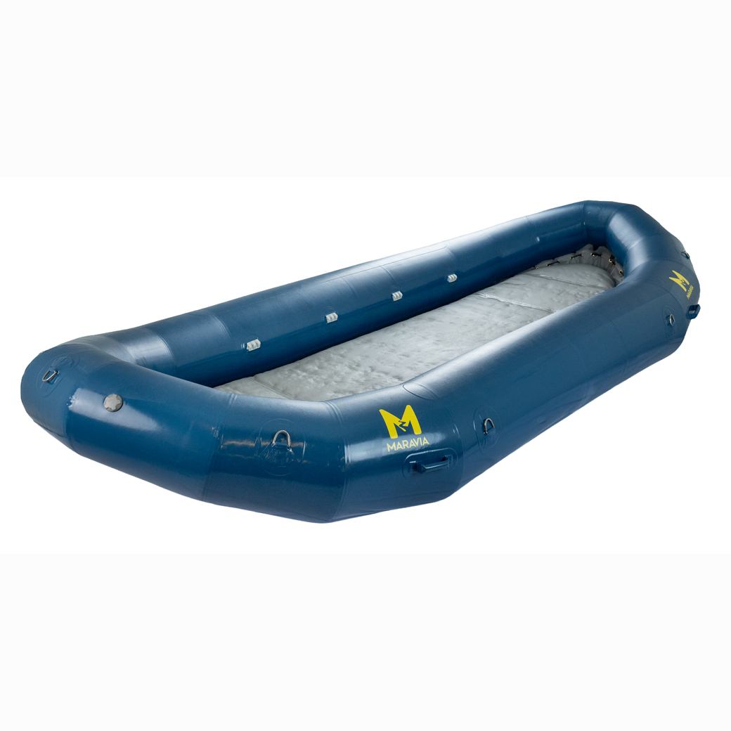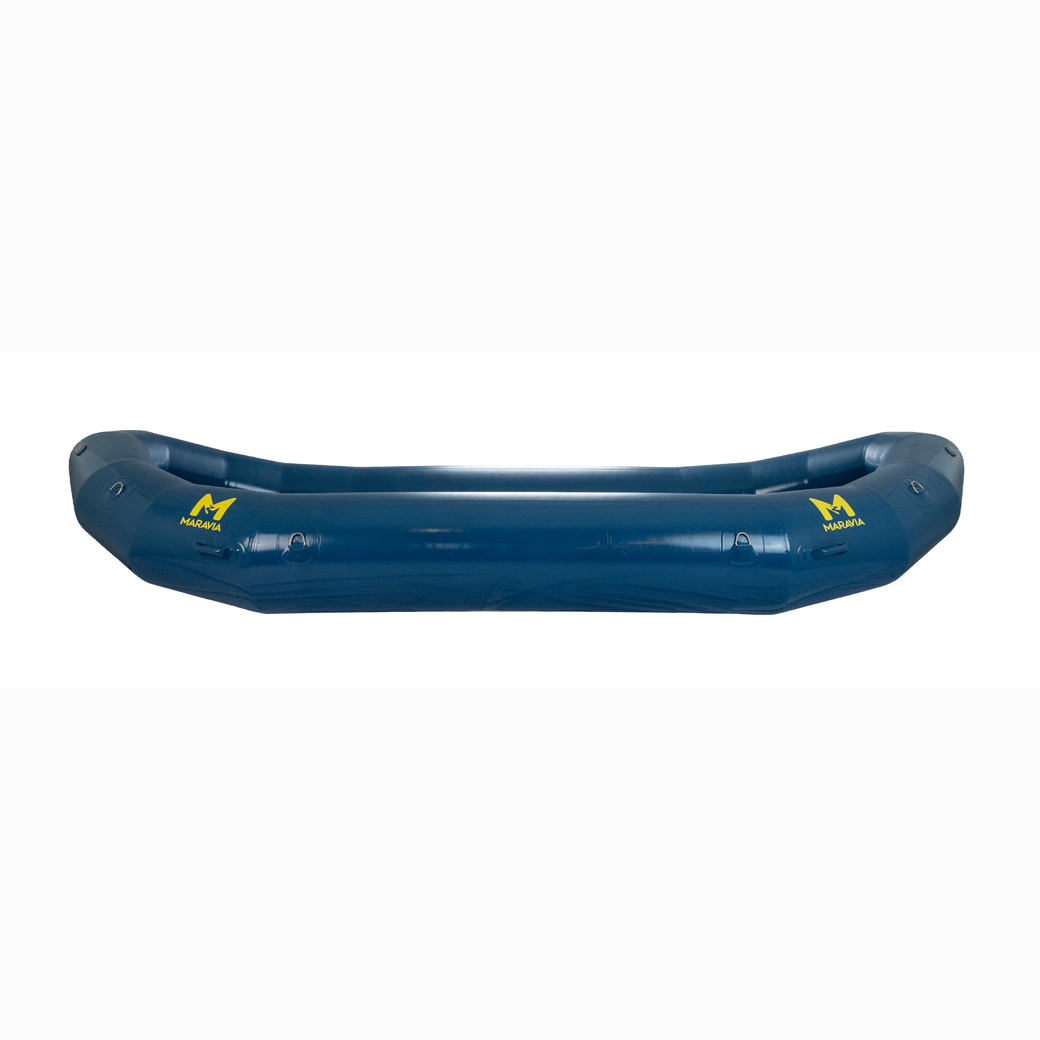 The Typhoon has reduced tube size in bow and stern to add extra room for people and gear. You will appreciate the reduced wind resistance of the smaller tubes on those long calm stretches with afternoon upstream winds. The Typhoon, sized between a Williwaw 2 and Mistral, is 16’ long, 7’ 6″ wide, with 22″ tubes diminishing to 16 inches. Install up to 4 thwarts get your paddle crew and hit the water.