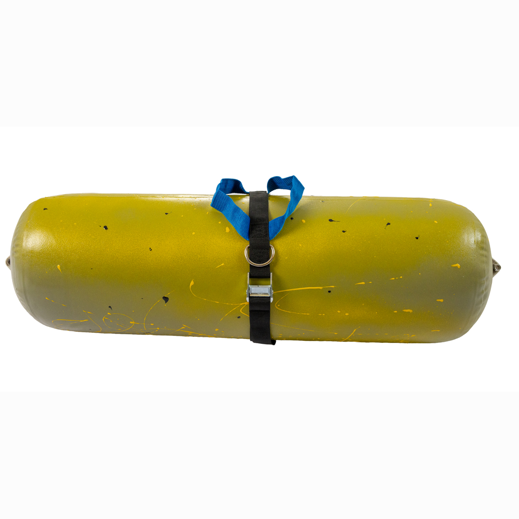 Safety strap is a length of 1-1/2″ polypro strap with grab loops attached. It fastens around the thwarts in a paddle raft and provides a place for paddlers to hang on. Two large D-rings are sewn in as attachments for gear.