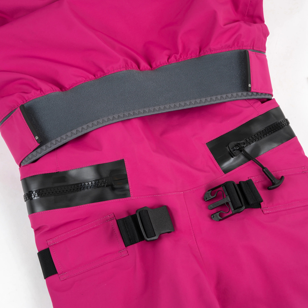 Flexible YKK™ Aquaseal® #10 clamshell zipper functions as an entry and relief zipper, placed conveniently out of the way of outfitting. T-grip zipper pulls allow for easy operation.
